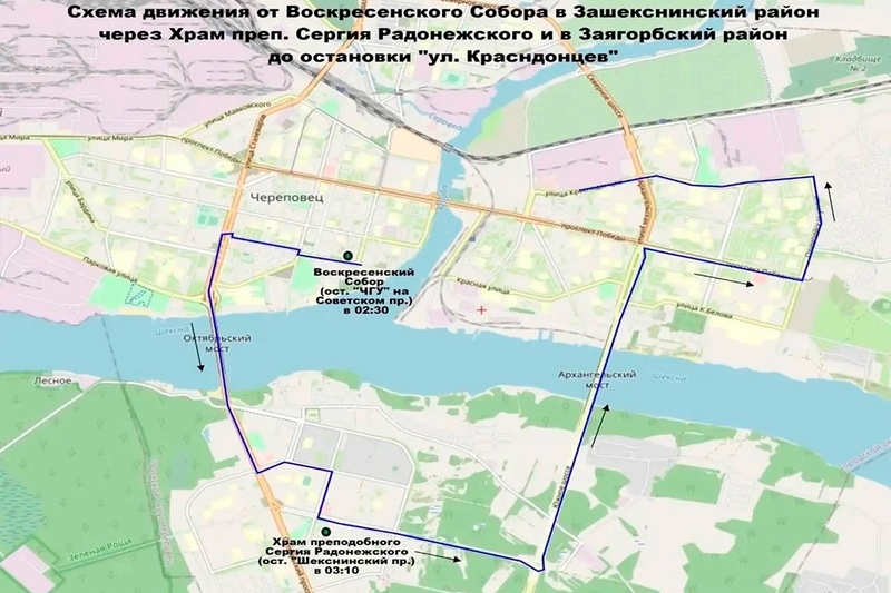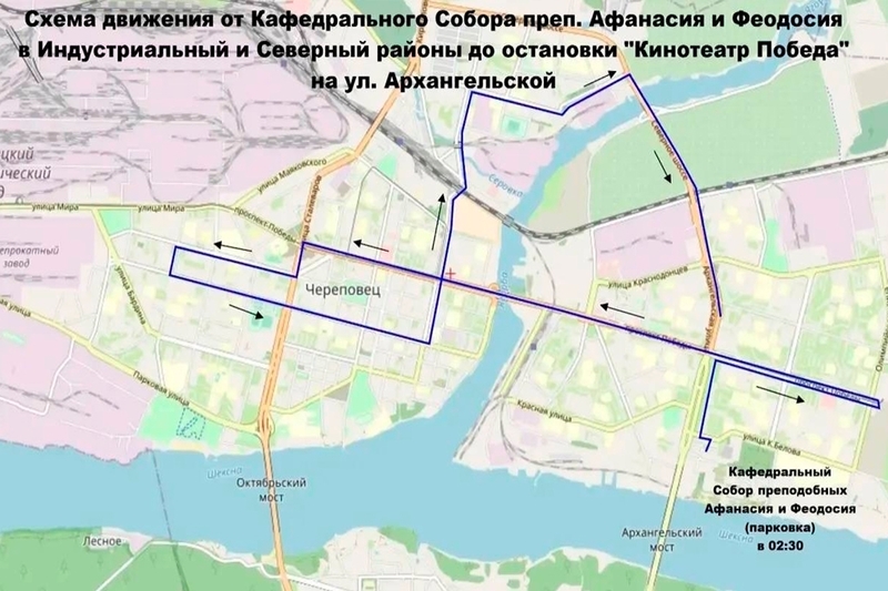 Бесплатный общественный транспорт в Череповце будет курсировать от основных храмов города после ночных богослужений. Маршруты организованы следующим образом: